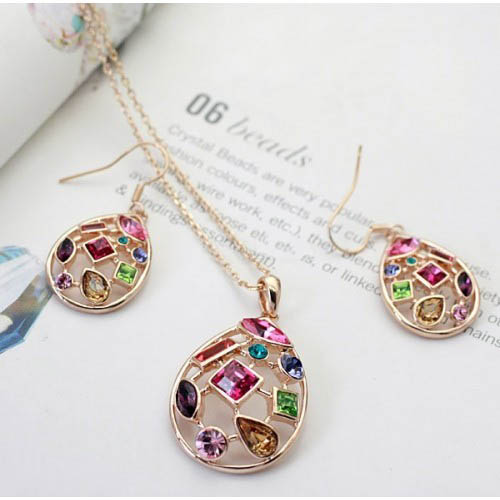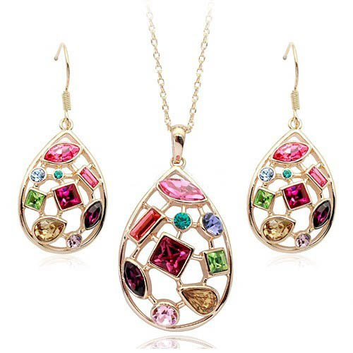 Комплект бижутерии в золотом цвете украшенный кристаллами Сваровски.