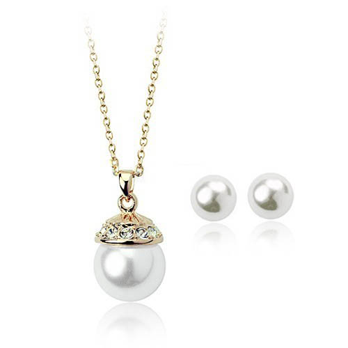 Комплект бижутерии в золотом цвете украшенный кристаллами Сваровски.