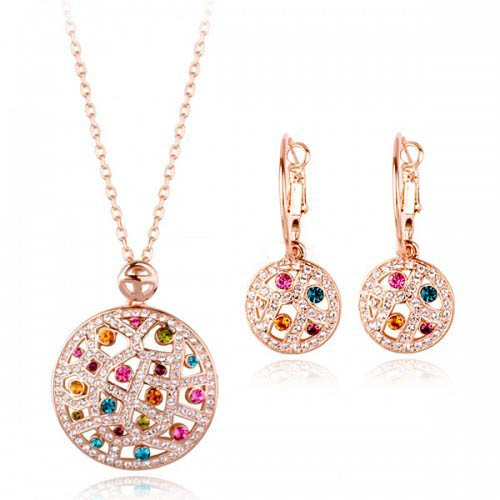 Комплект бижутерии в золотом цвете украшенный кристаллами Сваровски.