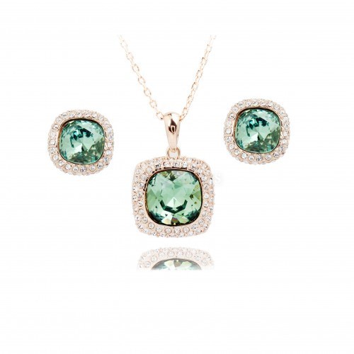 Комплект бижутерии в золотом цвете украшенный кристаллами Сваровски.
