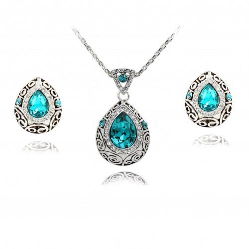 Комплект бижутерии в серебристом цвете украшенный кристаллами Сваровски.