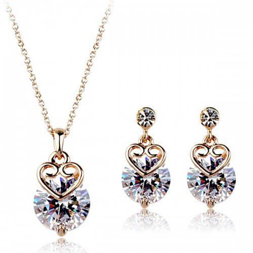 Комплект бижутерии в золотом цвете украшенный кристаллами Сваровски.