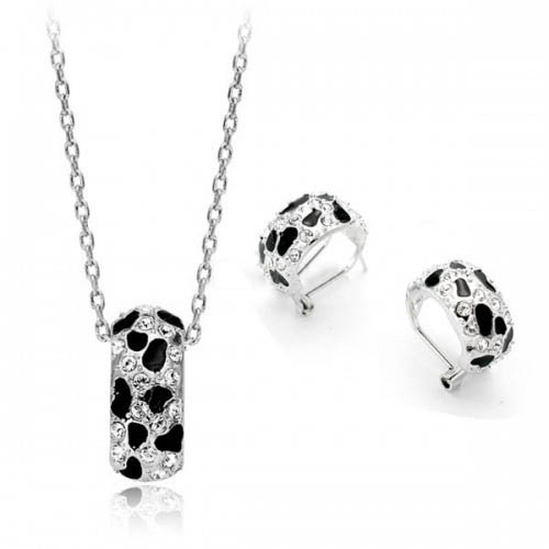 Комплект бижутерии в серебристом цвете украшенный кристаллами Сваровски.