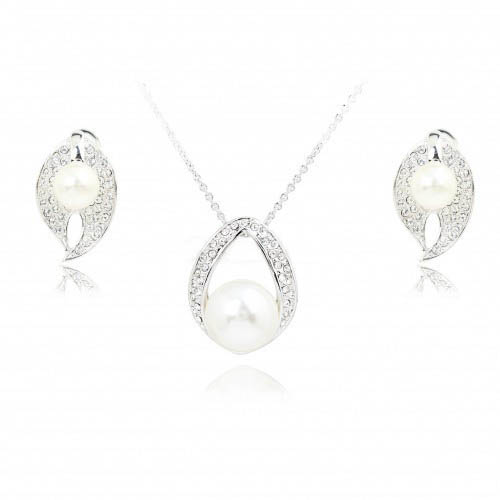Комплект бижутерии в серебристом цвете украшенный кристаллами Сваровски.