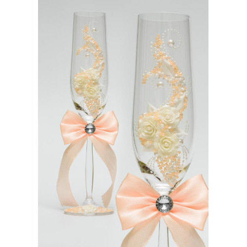 Декорированные свадебные бокалы. Ручная работа. Сердца складываются из двух половинок...
