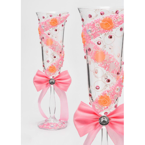 Декорированные свадебные бокалы. Ручная работа. Сердца складываются из двух половинок...