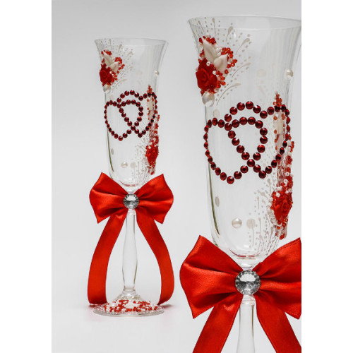 Декорированные свадебные бокалы. Ручная работа. Сердца складываются из двух половинок...