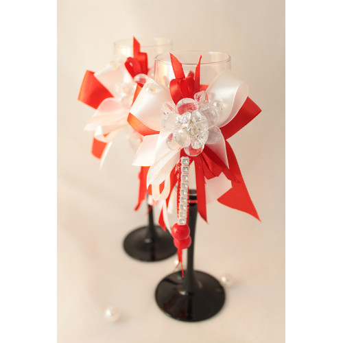 Декорируем бокалы. Банты на бокалах. В комплект входят прикрепленный к бантам 2..
