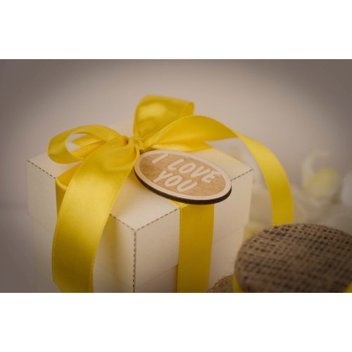 - коробочка, украшенная атласной лентой и биркой.