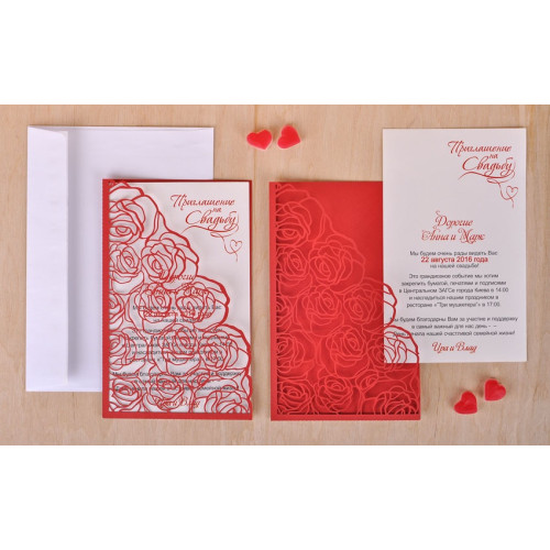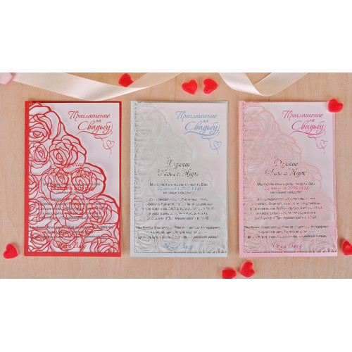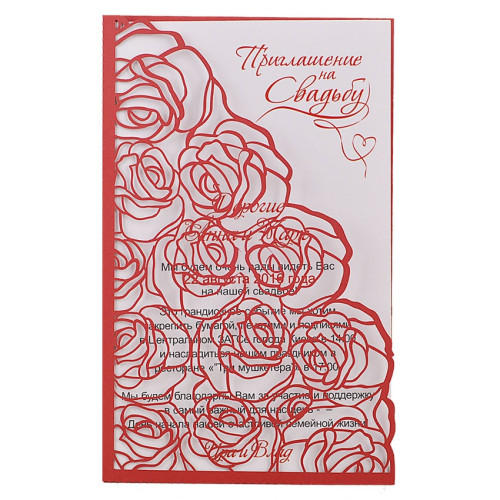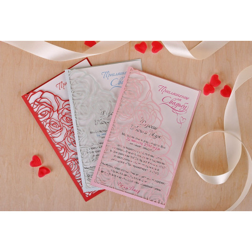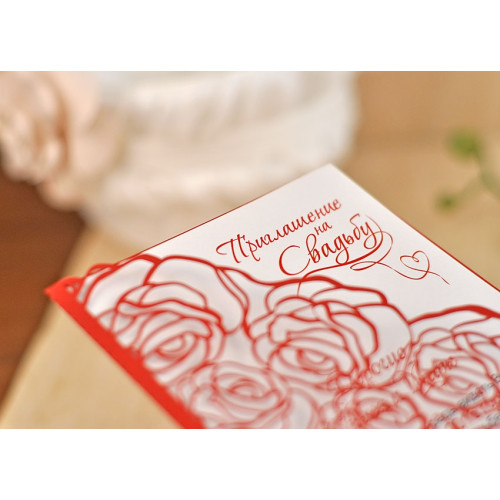 Свадебное приглашение (с розами). Сверху на вкладке напечатана надпись "Приглашение на свадьбу".