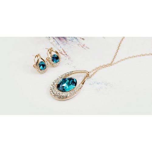 Комплект бижутерии в золотом цвете украшенный кристаллами Сваровски.