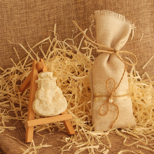 Мыло ручной работы с овсяными хлопьями - снеговик в подарочном мешочке WSH-022N
