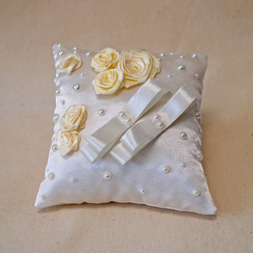 Изготовляется с использованием: королевского атласа (плотный атлас, держит красивую форму и роскошно выглядит), подушечка наполнена синтепоном. Броши, нежное кружево и атласные ленты.