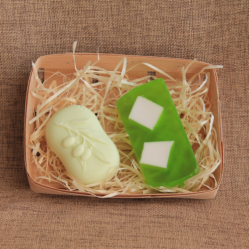 Набор натурального мыла ручной работы «Оливки и эвкалипт» – 2 мыла общим весом 130 г. Набор состоит из двух видов мыла: