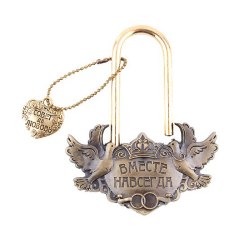Свадебный замочек для влюбленных и молодоженов «Вместе навсегда» – символ любви и верности на всю жизнь. Свадебный замок покрыт металлом под под бронзу.