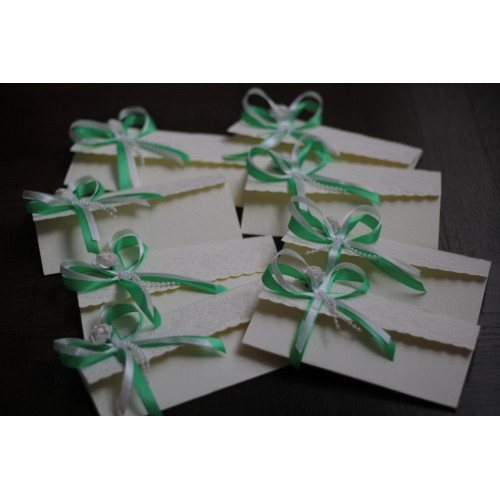 Цветовую гамму лент и элементов приглашения можно выбрать самостоятельно и согласовать с менеджером при заказе.