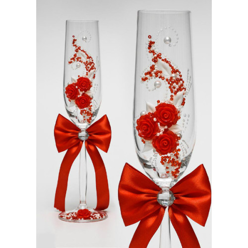 Декорированные свадебные бокалы. Ручная работа. Сердца складываются из двух половинок...