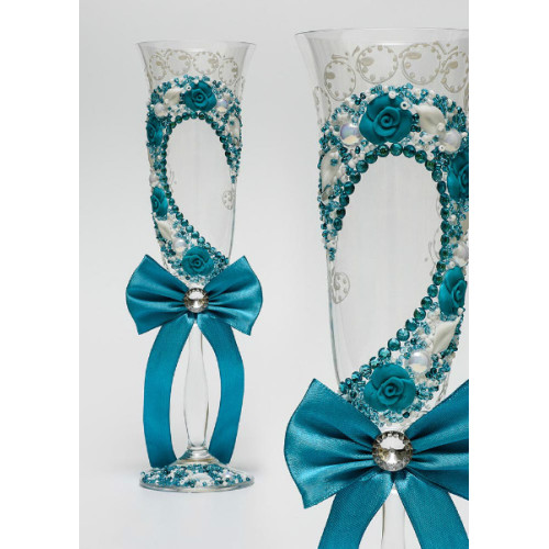 Декорированные свадебные бокалы. Сердца складываются из двух половинок. Ручная работа...
