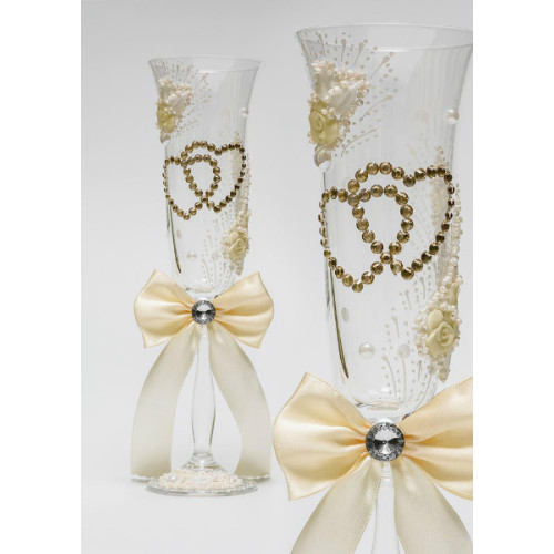 Декорированные свадебные бокалы. Ручная работа. Сердца складываются из двух половинок...