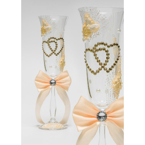 Декорированные свадебные бокалы. Ручная работа. Сердца складываются из двух половинок...