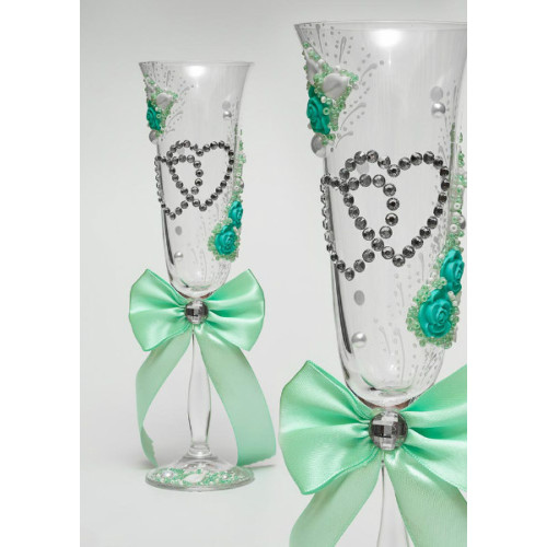 Декорированные свадебные бокалы. Ручная работа. Сердца складываются из двух половинок...