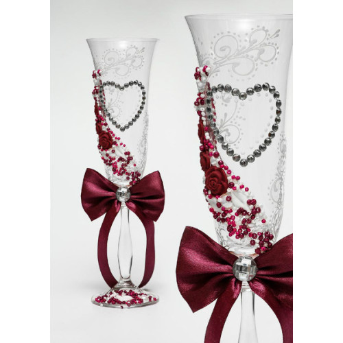 Декорированные свадебные бокалы. Ручная работа. Сердца складываются из двух половинок...