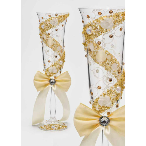 Свадебные бокалы, украшенные золотой росписью, со стразами. Ручная работа...