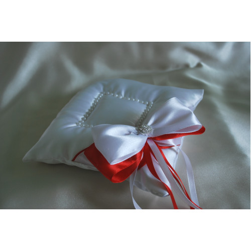 В стиле этой подушечки Вы можете заказать у нас любую свадебную атрибутику (свадебную книгу пожеланий ручной работы, свадебные свечи, поздравительные, корзинку для лепестков роз и многое другое).