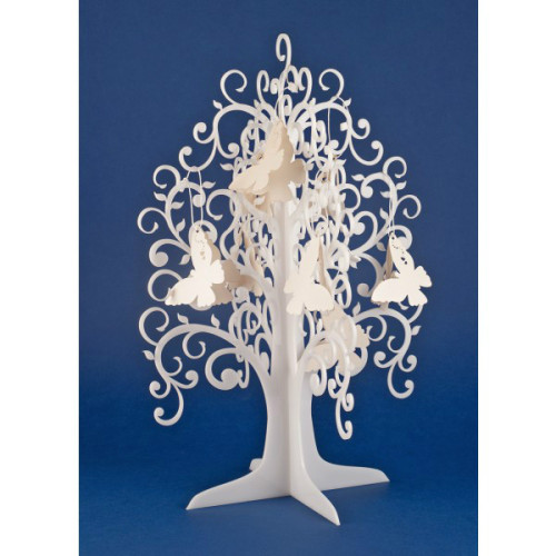 Изготовлено из молочного акрила толщиной 3 мм. В стандартную комплектацию дерева пожеланий входит 25 карточек для вписывания пожеланий